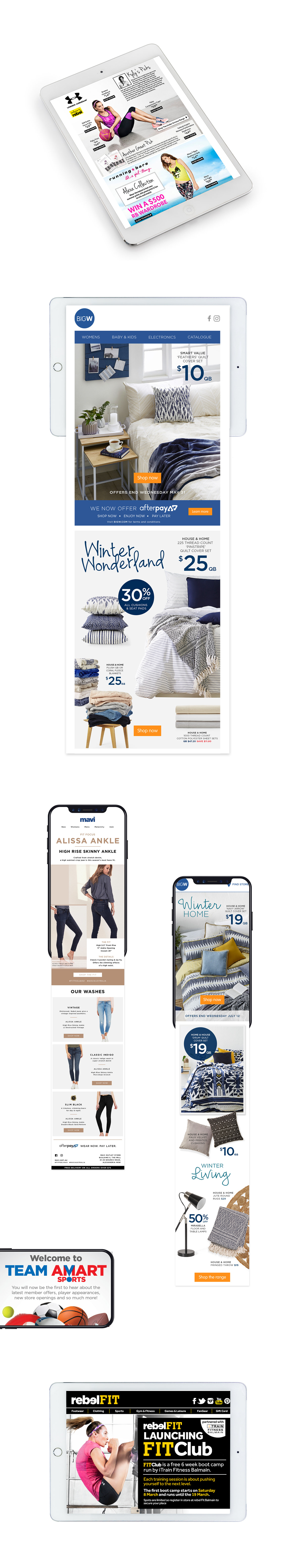 Marketing EDM design for various retail companies. Design to view on both mobile and desktop.